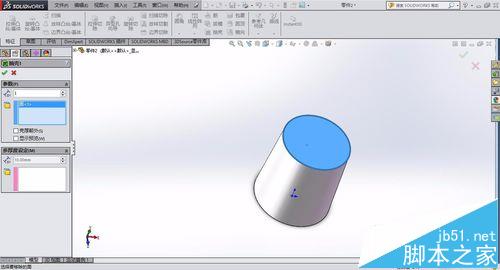 4、点击抽壳,抽壳的面为圆柱的上表面,即为上步骤所拉伸方向选取的上表面。设置抽壳的为1mm,即壁厚为1mm。