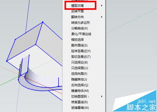 6、选中全部,单机右键选中“模型交错”,截面出现相交实线。