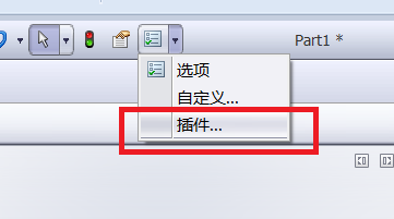 2、打开solidworks 2013主界面、在界面右上方点击选项图标-----插件图标。