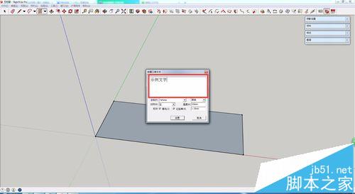 4、在“放置三维文字”工具栏中输入需要的文字,例如“示例文字”