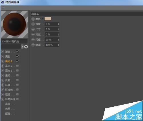 4、就到了重要的创建泥土的材质效果了,我们这里使用cheen-有机物来模拟效果,这个材质不只是可以制作医疗上的一些效果,而且还可以模拟一些其他效果。创建-着色器-cheen-有机物。