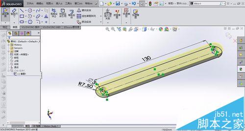 2、我们利用拉伸凸台的命令绘制4个零件,4个零件均为连杆,连杆的大小如下图所示,长度分别为50、180、130、230mm,厚度设为5,完成拉伸凸台的创建。