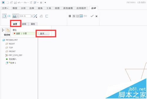 2、为了使用倒圆角指令,我们先使用拉伸指令,做一个既有外角又有内角的实体。