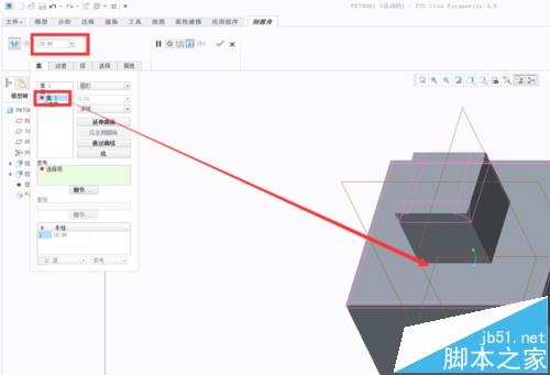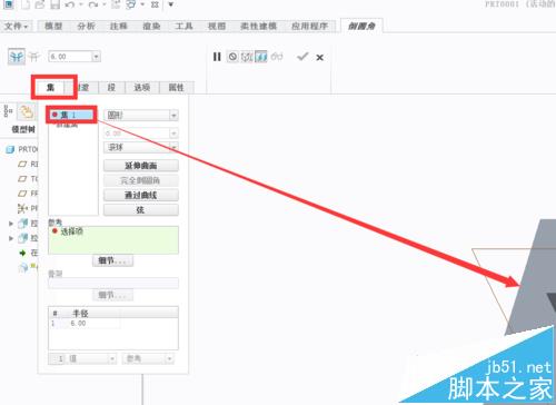 5、点击“集”——“集1”,将直径设置为6MM。按住 Ctrl不放,将下边那个正方体的四个边点击一遍。此时就形成了6MM直径的倒圆角
