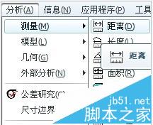 3、点选Pro/ENGINEER“分析”菜单->选择“测量”->选择“距离”,如图