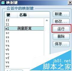 6、在映射键对话框点选“运行”对“ml”这个映射键进行测试,同时您还可以连续按键盘的“m”和“l”两个键同样可以触发测量距离操作并弹出步骤4的测量对话框。