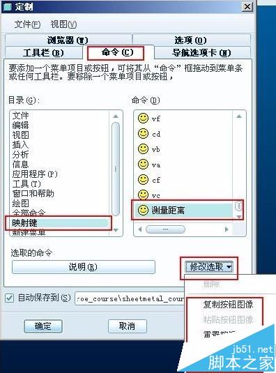 8、可以通过“工具”菜单->选择“定制屏幕”来设置刚才创建的映射键图标,如下图。可以为此映射键“选择按钮图像”或“编辑按钮图像”进行自定义图标,Pro/ENGINEER提供很多按钮图标,图中只是其中的一部分。完成了图标的设置您可以把该图标拖动到工具条中。