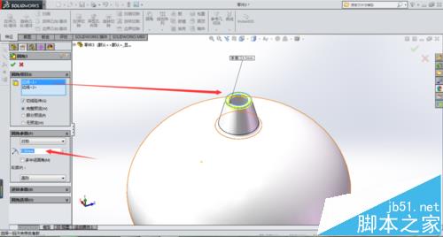 3、重新生成实体后,选择抽壳命令,选取葫芦顶平面为抽取面,留取壁厚1毫米。完成后可选择截面视图查看。