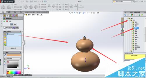 2、使用旋转凸台生成葫芦实体,如果形状不够美观,可以返回草图修改尺寸,如图