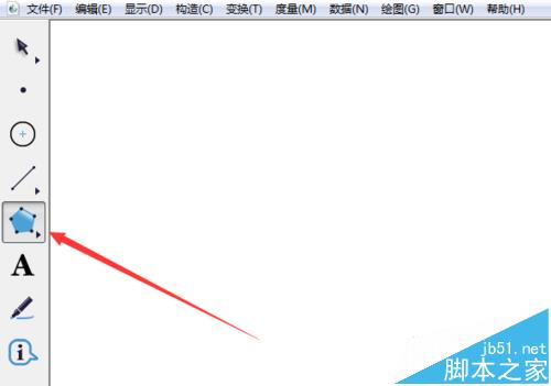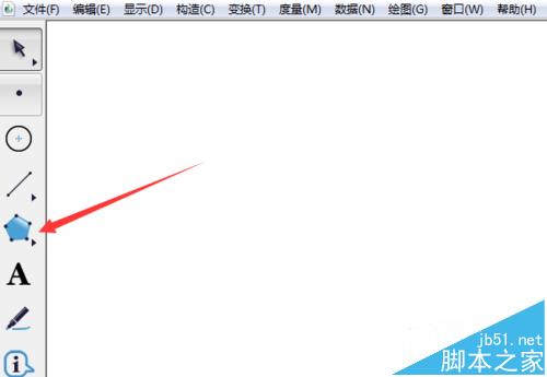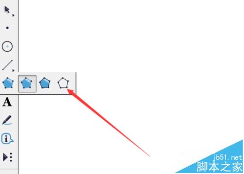 1、启动几何画板5.06以后,可以看到面板上有个多边形工具,单击这个工具旁的小三角形按钮,可以选择多边形类型。