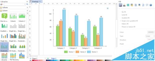 Edraw Max自带了制作图表模板,可以利用这些制作出漂亮的图形。下面将讲述如何利用该软件制作多系列的柱状图,具体操作步骤如下: