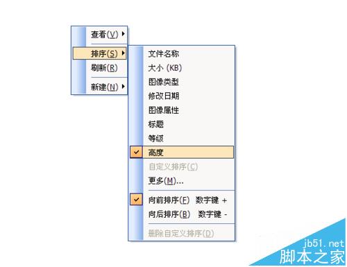 7、然后我们再右键就可以看见排序为高度,简单吧