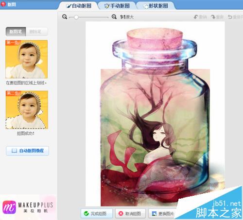 9、插入刚刚扣好的,调整大小,再调整透明度,全部合并