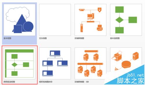 1、首先创建一个Visio 2013的文件,模板类型选择“跨职能流程图”,在弹出的【流程图】对话框中,有水平和垂直两个方向,我们选择垂直,单击确定。