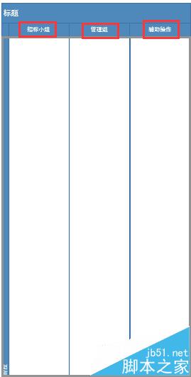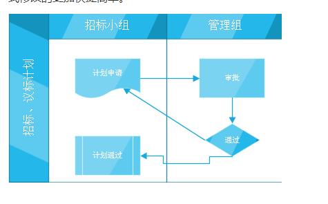 2、创建出来后,看到有两列的内容,它们也有自己的名字——泳道。我们可以再为它加一个,拖动到左侧的垂直泳道到绘图页中。现在把三列的标题改一下,分别改成“招标小组”、“管理组”和“辅助操作”。