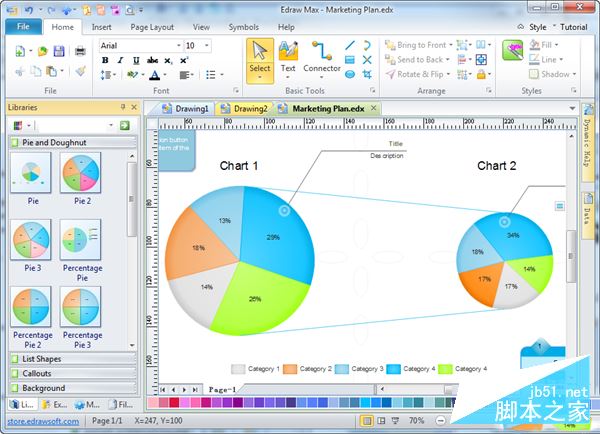 6)基本绘图工具让您可以通过直线、曲线、弧线、矩形和椭圆工具等元素绘制出新的图形,并可以保存到图形模板库供日后使用,让用户的思想和创意能够淋漓尽致的体现在绘图过程中。