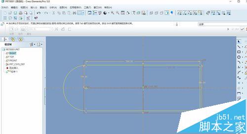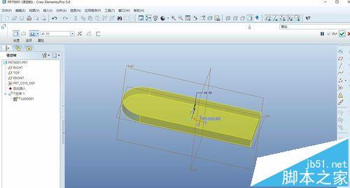 1、首先打开我们的proe软件,Ctrl+N新建一个文件,子类型为实体;然后使用拉伸的命令拉伸一个长方体,在TOP面绘制下图所示的轮廓线条;拉伸的高度为40。