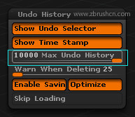 针对保存历史记录步骤过多,ZBrush提供了相关历史纪录插件,制作模型时,使用此插件可以帮助储存你所编辑的所有历史记录。特点是,不但可以使用它来储存记录,还可以随时的提取,回顾,以及取消任何一条你所储存的信息。可以有效的帮助节省很多的时间。