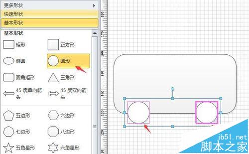 3、然后继续拖入两个“圆形”,调整其大小和位置,如图所示。