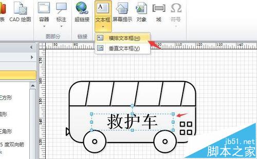 6、然后利用“横排文本框”工具在图中输入“救护车”字样,并调整字体和大小颜色,如图所示。