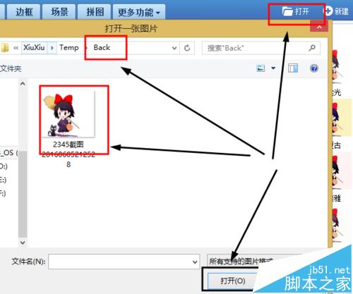 5、点击窗口界面右上角的“打开”,找到并打开刚才保存的背景图片。