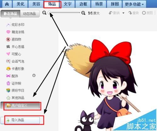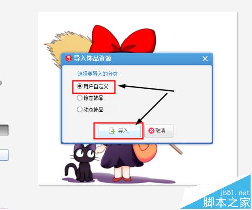 6、在“饰品”栏找到“导入饰品”,选择“用户自定义饰品”,从而导入饰品。