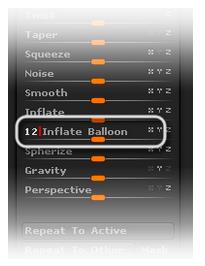 6、最后,返回到Deformation子菜单,在Inflate Balloon滑动条里输入12(点开X、Y和Z轴)。