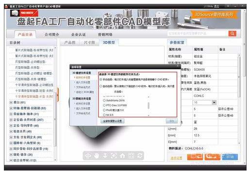3、选择选用的CAD模型库:如选择盘起工业FA工厂自动化零部件CAD模型库