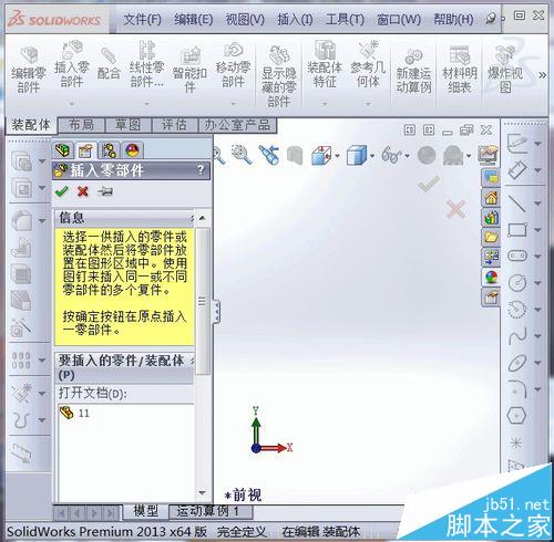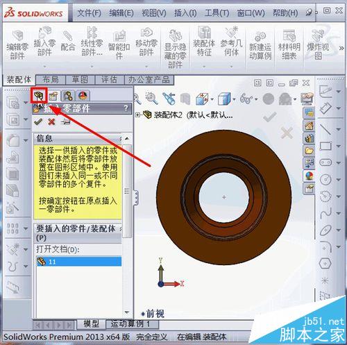 1、进入装配体模式,准备插入第一个零件,如图所示