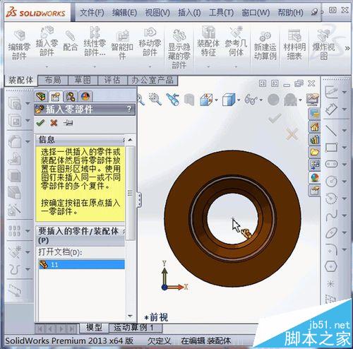 2、双击"零件11",将鼠标移动到视图窗口内,但不要点击,如图所示