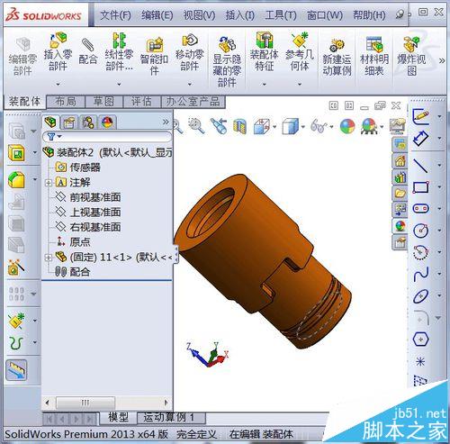 8、大功告成,现在零件和装配模式原点重合,剖切面的时候就省去很多事情了。