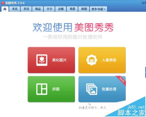 1、打开美图秀秀这款软件,进入美图秀秀的操作界面,如图所示:
