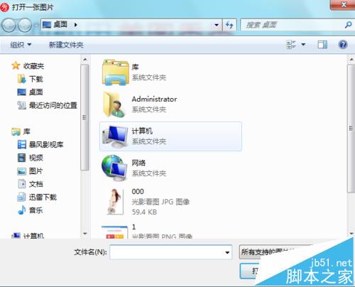 3、点击打开后,弹出打开一张图片对话框,如图所示: