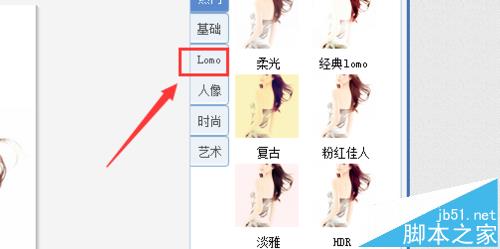 5、在这个编辑界面内找到lomo选项,如图所示: