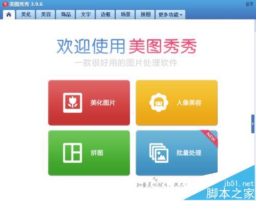 1、打开美图秀秀这款软件,进入美图秀秀的操作界面,如图所示: