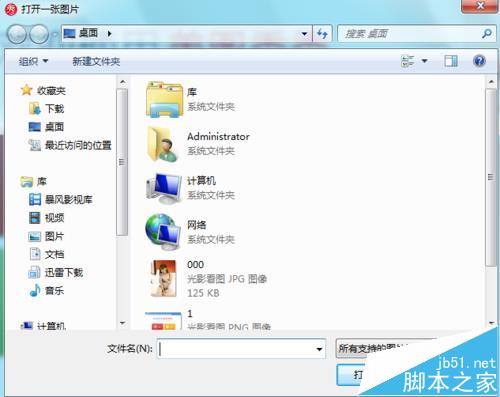 3、点击打开选项后,弹出打开图片对话框,如图所示: