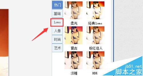5、在这个界面内找到lomo选项,如图所示: