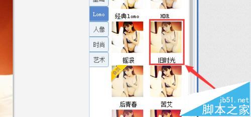 6、点击lomo选项后,在lomo的编辑区找到旧时光选项,如图所示: