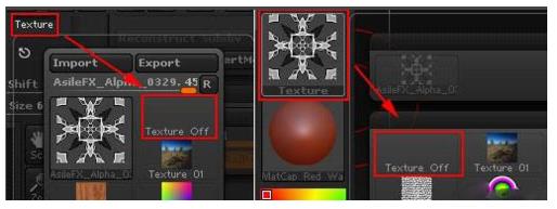 6、在Texture菜单下选择Texture off,或者在如图所示位置选择,去掉贴图,发现遮罩遮住贴图的黑色部分与我们需要的相反,按住Ctrl键左键单击视图使遮罩反向,达到我们要求的遮罩。如图所示。