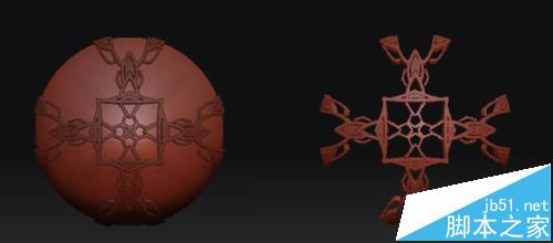 制作镂空的较为复杂的模型,不是传统方法所能胜任的。假如我们通过遮罩将一个球体需要镂空的地方去掉,再为其增加厚度,球体就可以变成复杂的镂空球体。而ZBrush的自定义遮罩形状和Subtool中的Extract功能制作有厚度的镂空球体为此方法提供了实际操作的可能。