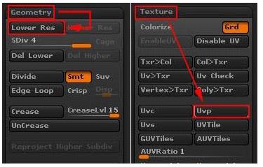 4、旋转视图观察发现贴图的分布并不想我们想象中的完美,两边更有极点,如图所示,这是UV的分布问题,只要调整UV的分布即可。点击Tool> Geometry>Lower Res降低球体细分至第一级,选择Tool>Texture>Uvp将球体的UV分布调节成展平式分布,使贴图的分布达到较为满意的效果。如图所示。