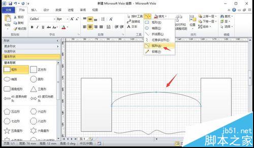 3、在两个矩形之间,用“弧形工具”绘制一个桥底边,如图所示。
