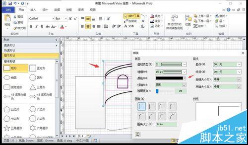 再从左侧形状栏拖入一个“圆形”,并调整其线条属性为“黑色”,如图所示。