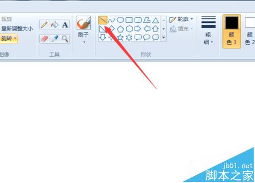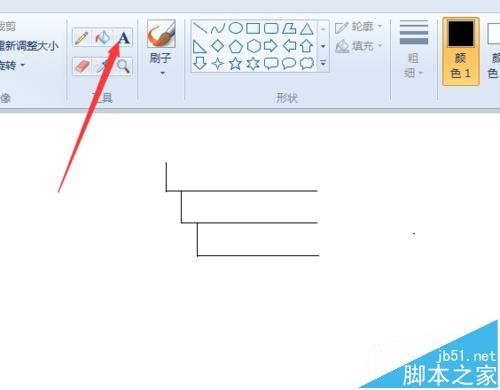 1、打开Windows画图工具,单击线段工具,把线粗设置为细线。按住shift键,拖动鼠标可以画出标准的水平线或竖直线,如下图所示。有多余部分可以使用橡皮擦擦除。
