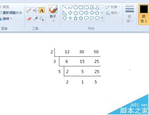 6、然后输入算式和结果。这样一个短除法算式就制作完毕,入后使用截图工具截图后插入答题框里就行了。