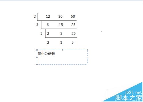 5、最后一个文本框输入结论,先输入汉字:最小公倍数。