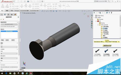 2、点选右侧设计库-toolbox-gb浏览至所需标准件种类(这里以bolts and studs中的沉头螺栓为例)