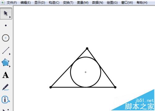 2、在工作区拉出一个三角形。现在我要把三角形和它的内切圆围城的部分涂上阴影。