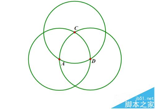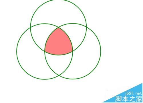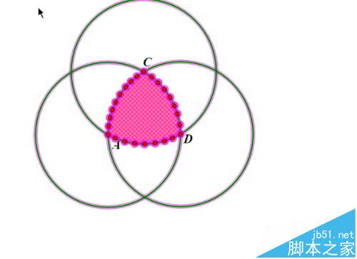 1、利用多边形来近似替代阴影部分轮廓,从而画出阴影。如图要画出三个圆相交的公共部分阴影。