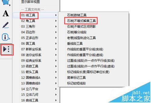 2、两个参数建立后,单击自定义工具---线工具---石岩不等式解集工具。